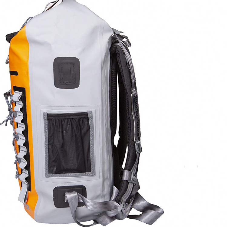 सैन्य शैलीको रोल-टप क्लोजर प्रणाली प्रयोग गर्दछ जसमा सुरक्षित बकल फास्टनरहरू सहित 3-4 रोलहरू आवश्यक पर्दछ, पूर्ण डुब्न र नराम्रो छालहरूको सामना गर्ने पूर्ण वाटरटाइट सील सिर्जना गर्दछ।