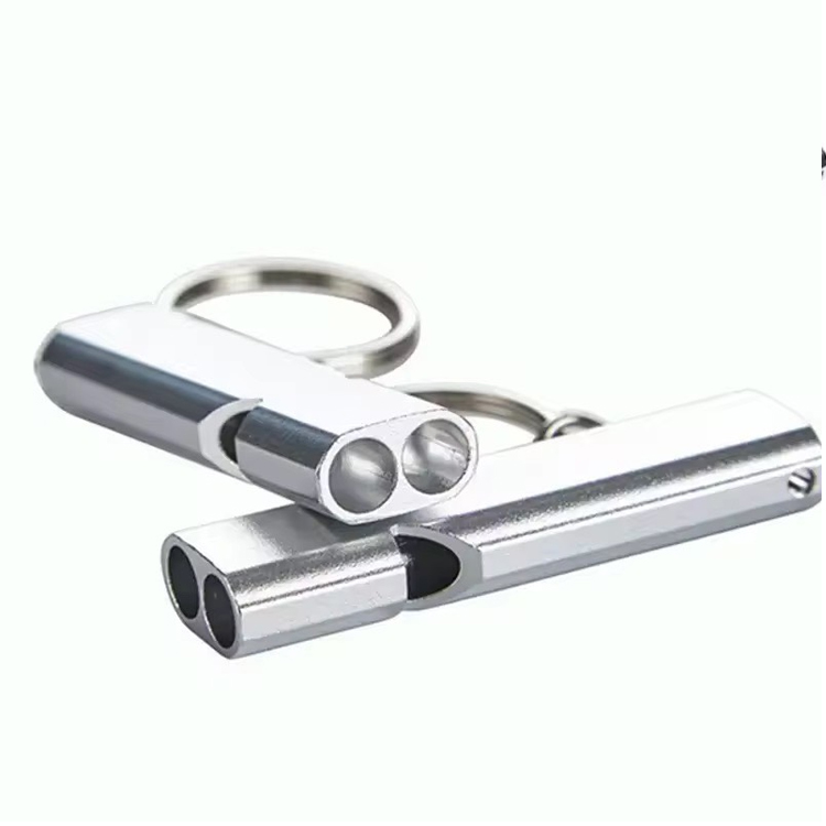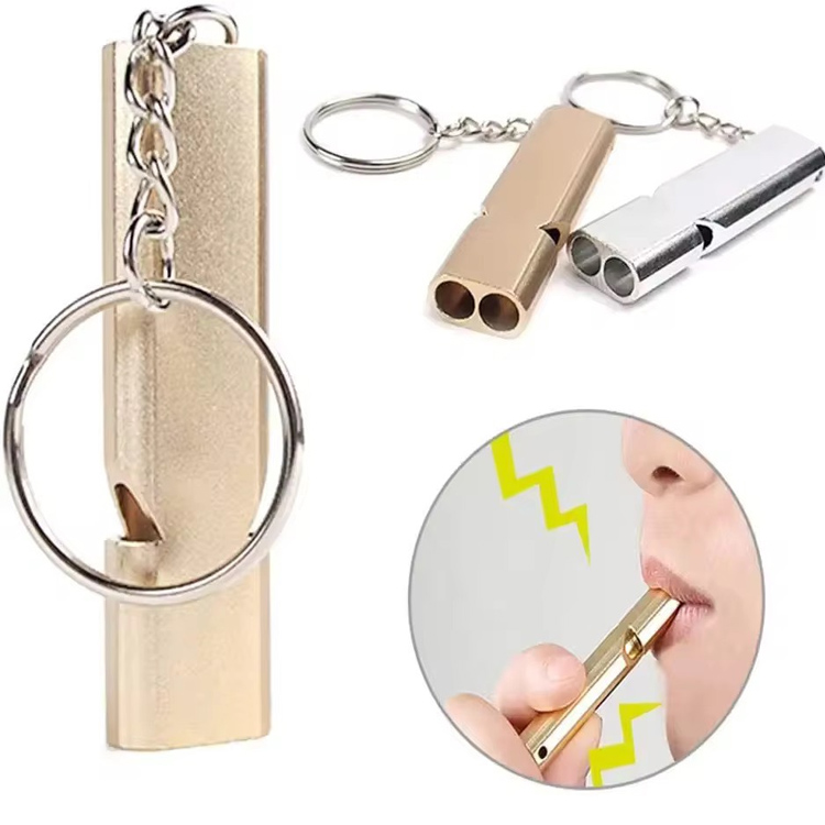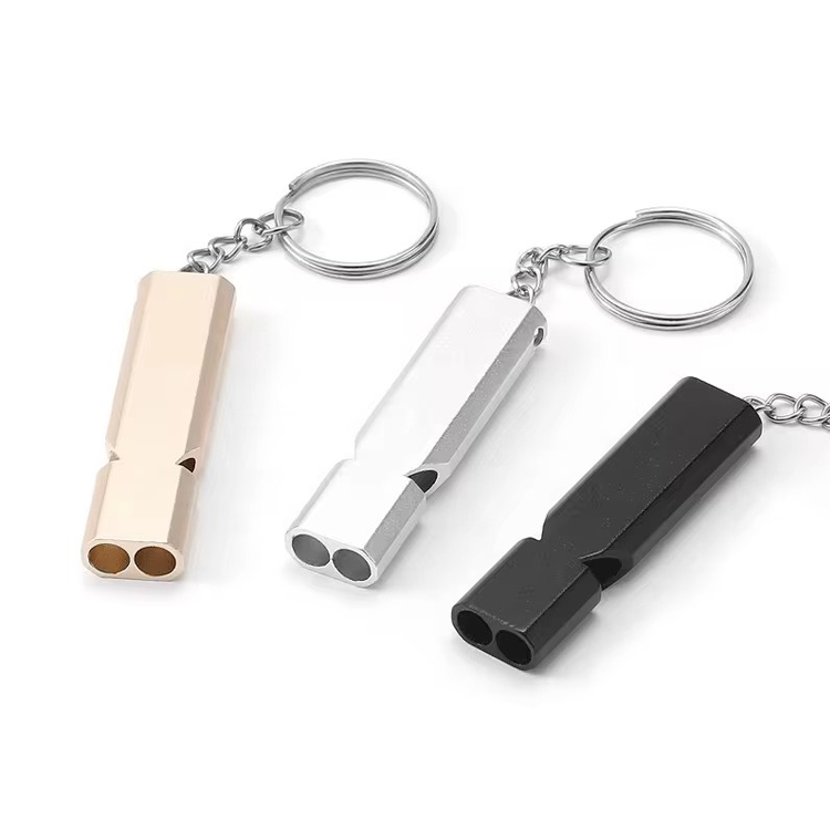 एल्युमिनियम सर्वाइभल व्हिसल पोर्टेबल ट्विन ट्यूब सुरक्षा कुञ्जी चेन