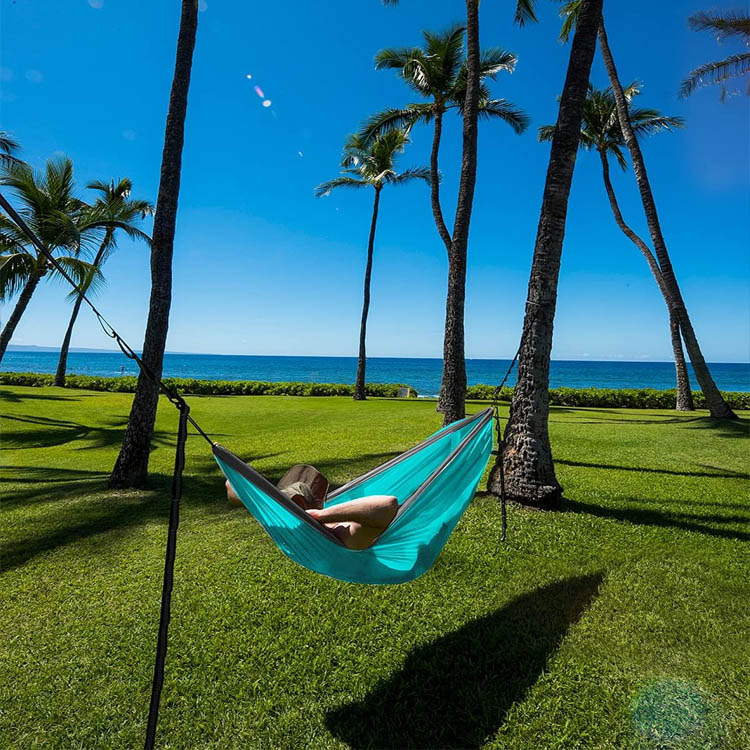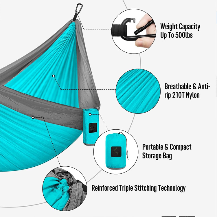हीरा बुनाई ढाँचाको साथ प्रामाणिक 70D रिपस्टप नायलॉनबाट बनाइएको, यो ह्यामकले विभिन्न मौसम परिस्थितिहरूमा बल, सास फेर्ने क्षमता र द्रुत-सुकाउने कार्यसम्पादनको उत्तम सन्तुलन प्रदान गर्दछ।