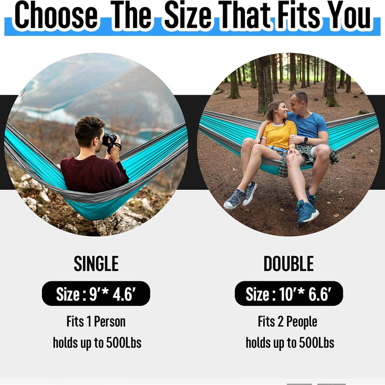 क्याम्पिङ ह्यामक डबल र एकल पोर्टेबल ह्यामक। आउटडोर साहसिक कार्यका लागि तपाईंको परम बहुमुखी विश्राम प्रणाली। यो क्याम्पिङ ह्यामकले यसको अनुकूली डिजाइनको साथ दुबै र एकल प्रयोगकर्ताहरूलाई समायोजन गर्दछ। प्रोफेशनल ट्री स्ट्र्यापहरूसँग पूर्ण, यो हल्का नायलॉन प्यारासुट ह्यामकले अधिकतम आराम र पोर्टेबिलिटी प्रदान गर्दछ।