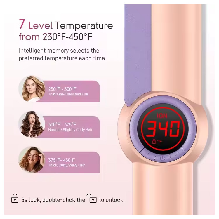 राम्रो, मध्यम, वा मोटो कपाल अनुरूप अनुकूलन गर्न मिल्ने ताप सेटिङहरू। चाहे तपाईं सीधा गर्दै हुनुहुन्छ, कर्ल गर्दै हुनुहुन्छ, वा लहराउनुहुन्छ, तपाइँ गर्मीको क्षतिको जोखिम बिना कुशलतापूर्वक शैलीको लागि आदर्श तापमान चयन गर्न सक्नुहुन्छ।