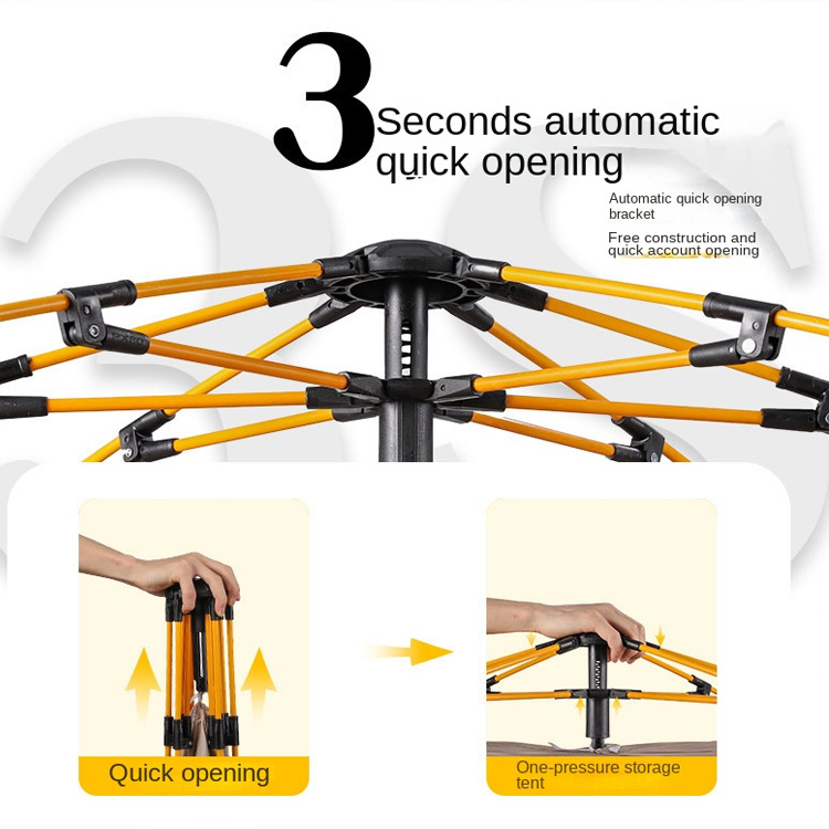 उच्च गुणस्तरको 2, 4, 6-व्यक्ति वाटरप्रूफ स्वचालित आउटडोर टेन्ट। हाम्रो उच्च-गुणस्तरको स्वचालित टेन्टको साथ सहज क्याम्पिङको अनुभव लिनुहोस्। 2, 4, वा 6 व्यक्तिहरूको लागि डिजाइन गरिएको, यसले उत्कृष्ट वाटरप्रूफ र विन्डप्रूफ सुरक्षाको लागि सुपीरियर डबल बाक्लो अक्सफोर्ड कपडाहरू प्रस्तुत गर्दछ। सबै-मौसम बाहिरी साहसिक कार्यहरूको लागि तपाईंको भरपर्दो आश्रय।