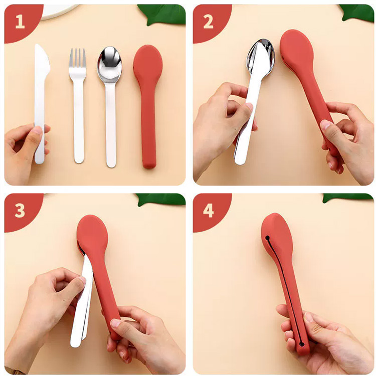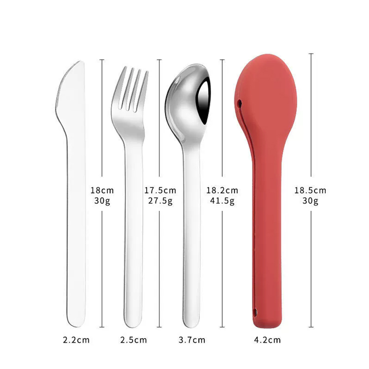 उच्च गुणस्तरको क्याम्पिङ ट्राभल कटलरी सेट सिलिकन पोर्टेबल। आउटडोर साहसिक कार्यका लागि तपाईंको प्रमुख भोजन साथी। यो उच्च-गुणस्तरको कटलरी सेटले सुरक्षात्मक सिलिकन केसमा टिकाऊ स्टेनलेस स्टील फ्ल्याटवेयरको सुविधा दिन्छ। क्याम्पिङ, यात्रा, र पिकनिकको लागि उत्तम, यसले जहाँसुकै सुरुचिपूर्ण र स्वच्छ भोजन सुनिश्चित गर्दछ।