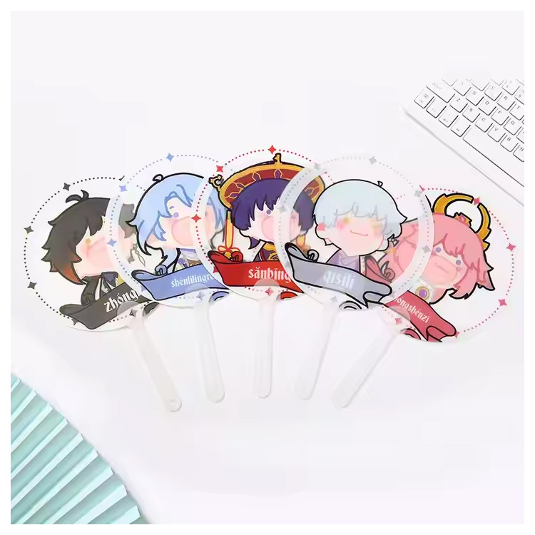 मिनी एनिमे तारा प्लास्टिक पारदर्शी वाटरप्रूफ ह्यान्ड फ्यानहरू।कस्टम एनिम पारदर्शी प्लास्टिक ह्यान्ड फ्यानहरू— हल्का, वाटरप्रूफ, र तपाईंको मनपर्ने क्यारेक्टर वा लोगोको साथ छापिएको। घटनाहरू, कन्सर्टहरू, प्रचारहरू, वा स्मृति चिन्हहरूको लागि उत्तम। शैली मा कूल रहन को लागी एक रमाइलो र व्यावहारिक तरीका।