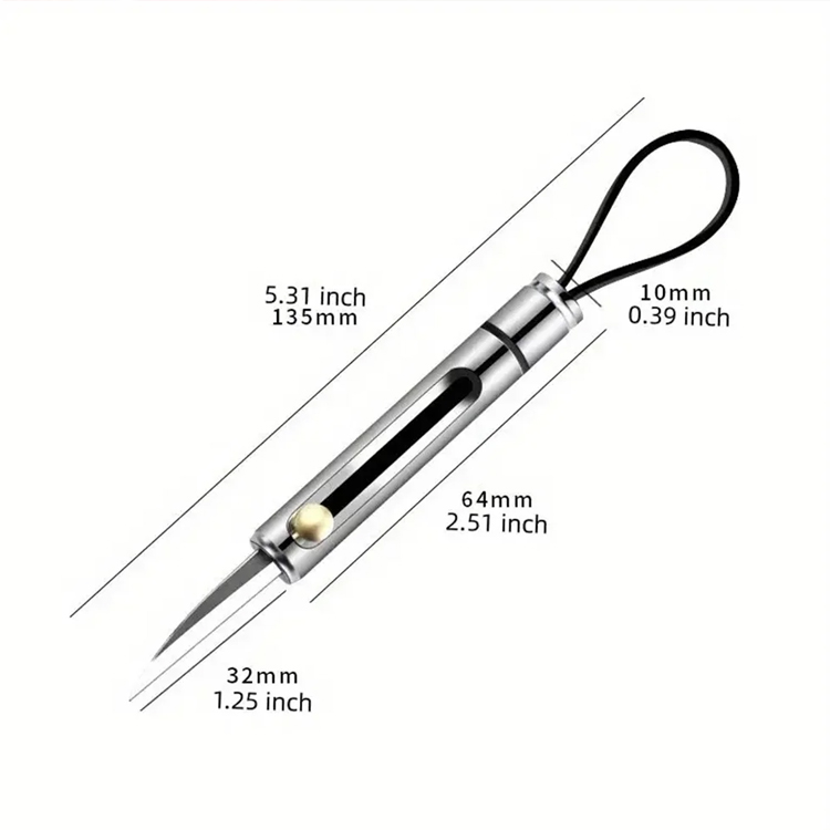 केवल 2.5 इन्च नाप्ने र केवल 0.8 औंस तौल भएको, यो उपकरणले तपाइँको किचेन वा ब्याकप्याकमा निर्बाध रूपमा संलग्न गर्दछ, तपाइँसँग सँधै एक काट्ने समाधान सजिलैसँग उपलब्ध छ भन्ने सुनिश्चित गर्दै।