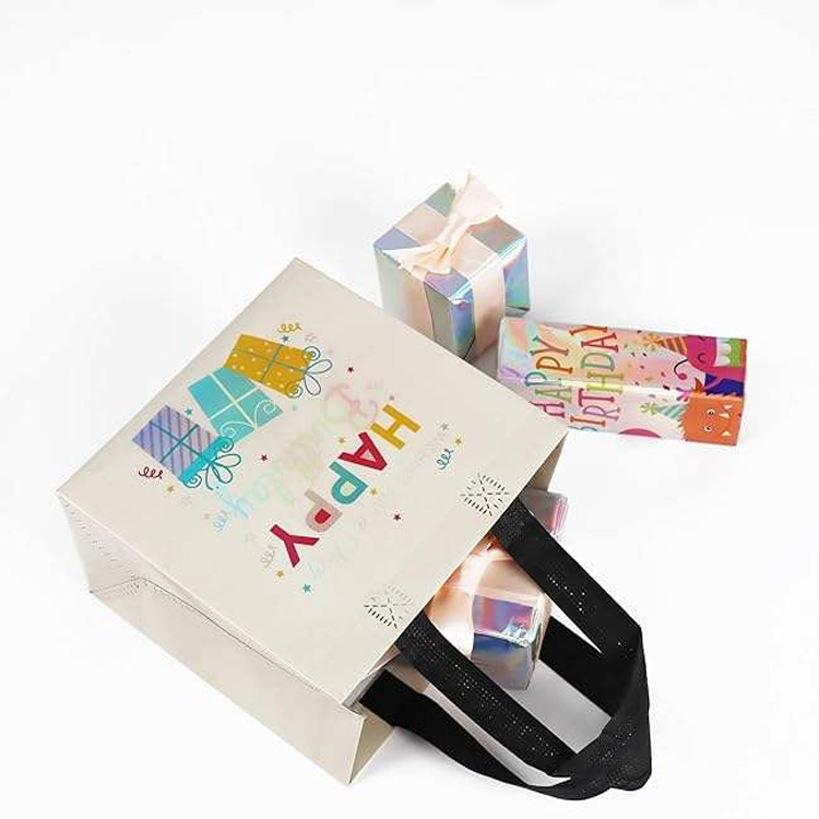 बहु-आकार रङ-समन्वित गैर-बुने जन्मदिन झोलाहरू। बहु-आकार रङ-समन्वित गैर-बुने जन्मदिन झोलाहरू जीवन्त डिजाइनहरू, बलियो ह्यान्डलहरू, र मिल्दो ट्यागहरू, पार्टीको पक्षमा, उपहारहरू, र सजावटहरूका लागि उपयुक्त, कुनै पनि प्रस्तावमा चाडपर्वको स्पर्श थप्दा, कुनै पनि प्रस्तावित र व्यावहारिक, इको-मैत्री प्याकेजिङ्ग समाधान।