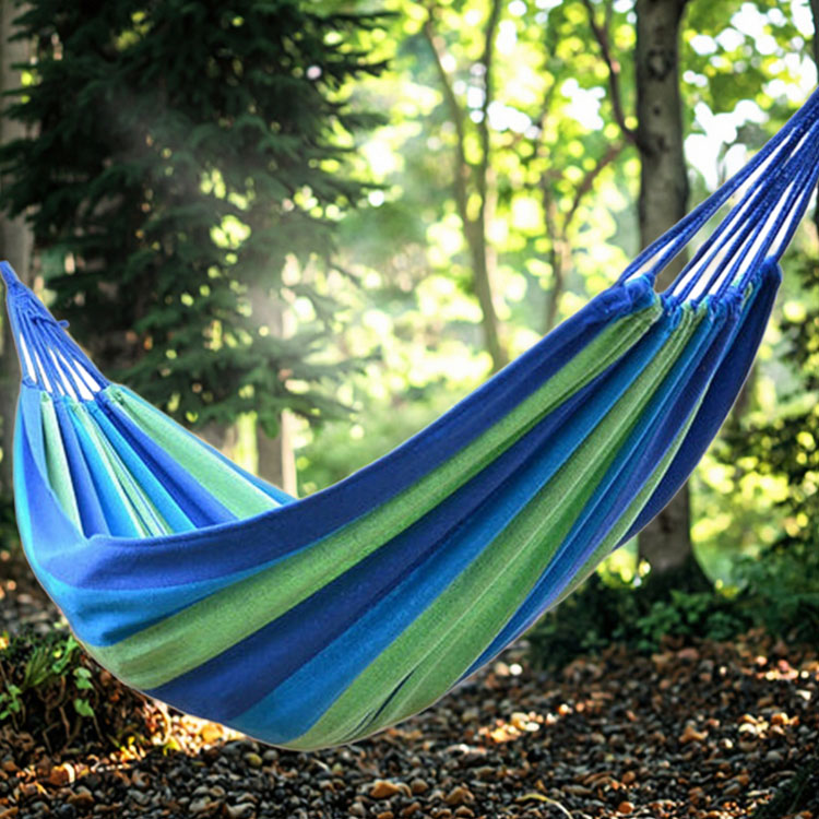 बाहिरी आरामदायी क्याम्पिङ २-व्यक्ति क्यानभास ह्यामक। आउटडोर साहसिक कार्यका लागि तपाईंको उत्तम एकल एस्केप। यो एकल-व्यक्ति क्याम्पिङ ह्यामकले गाढा क्याराबिनरहरू र समायोज्य रूख स्ट्र्यापहरूको साथ टिकाउ टाफेटा कपडा निर्माण सुविधा दिन्छ। अधिकतम आराम र सजिलो सेटअपको लागि डिजाइन गरिएको, यो जंगली विश्रामको लागि तपाईंको आदर्श साथी हो।