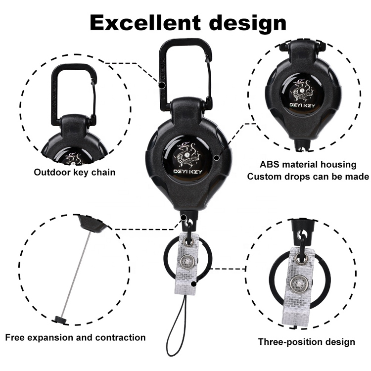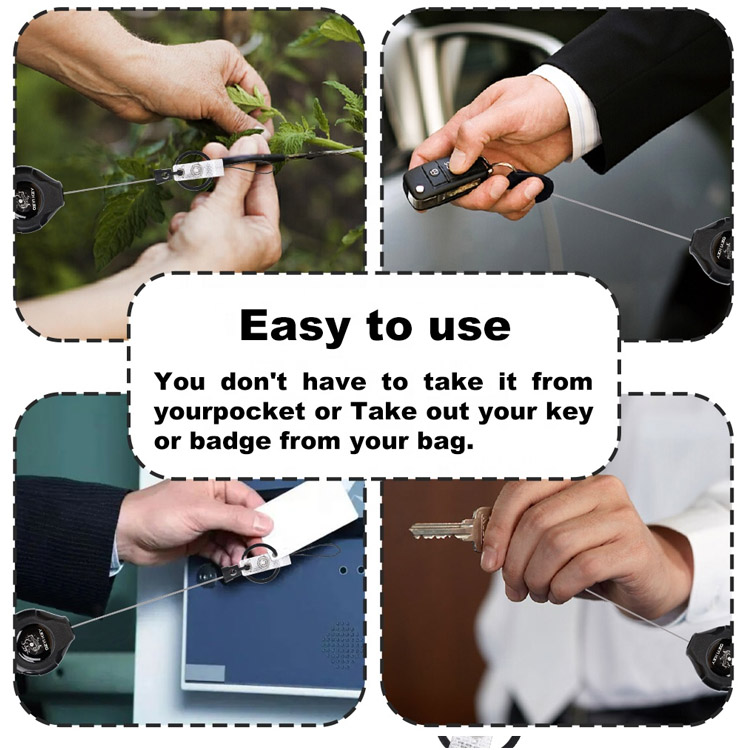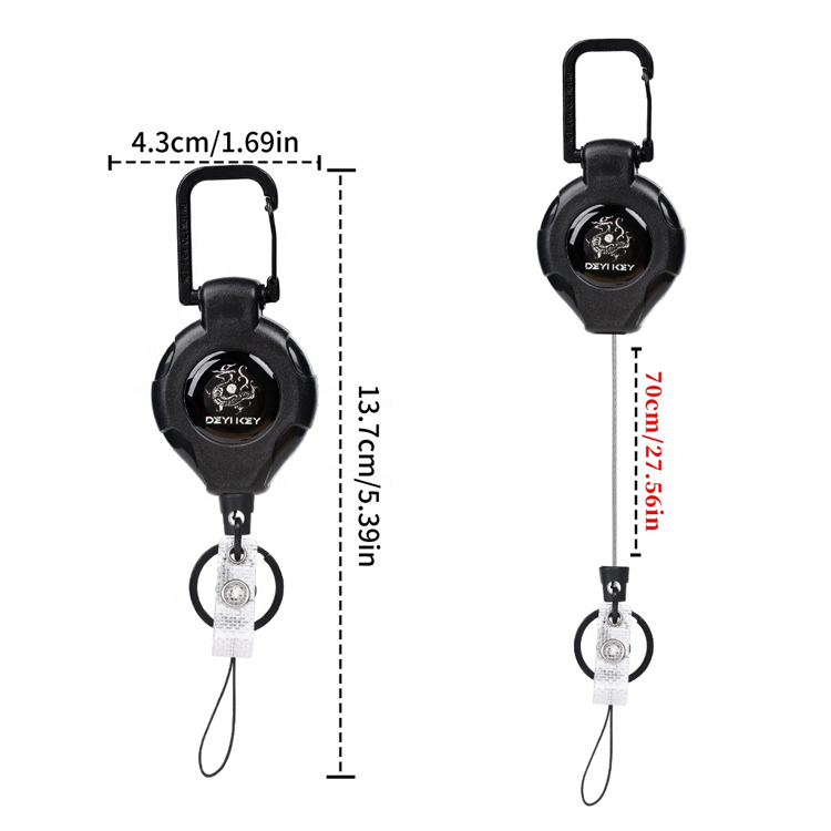 टिकाउ 80 सेमी नायलन डोरीलाई चिल्लो फिर्ता लिन मिल्ने मेकानिजमले फिचर गर्दछ जसले ट्याङ्गलहरू रोक्न, बाहिरी गतिविधिहरूमा तपाईंको कुञ्जीहरू सुरक्षित र पहुँचयोग्य राखेर आरामदायी विस्तार गर्न अनुमति दिन्छ।