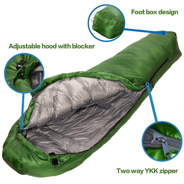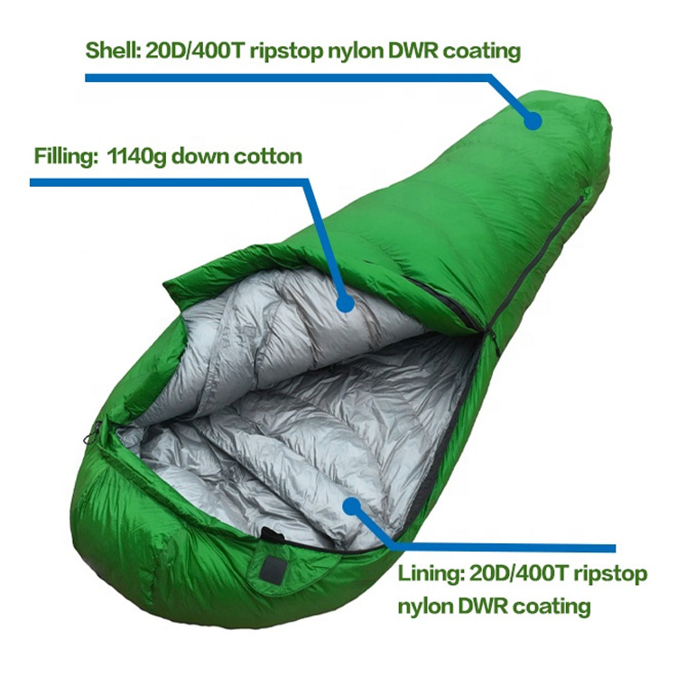 बाहिरी अल्ट्रालाइट पोर्टेबल चिसो मौसम आमा सुत्ने झोला। वन्यजन्तु साहसिक कार्यहरूको लागि तपाईंको अन्तिम चिसो मौसम निद्रा समाधान। यो अल्ट्रालाइट ममी स्लीपिङ ब्यागमा अधिकतम न्यानोपनका लागि प्रिमियम डक गुज डाउन इन्सुलेशन सुविधा छ। गम्भीर क्याम्पिङको लागि डिजाइन गरिएको, यसले न्यूनतम प्याक वजनको साथ असाधारण थर्मल दक्षता संयोजन गर्दछ।