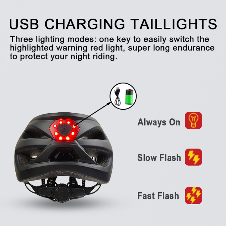 रिचार्जेबल टेललाइट ब्रेथबल सेफ्टी रोड बाइक हेल्मेट।आधुनिक साइकल चलाउनको लागि तपाईंको परम अनुकूलन योग्य सुरक्षा समाधान। यो एडल्ट डुअल स्पोर्ट हेल्मेटमा एक एकीकृत रिचार्जेबल एलईडी टेललाइट र उन्नत सास फेर्ने डिजाइन रहेको छ। सुरक्षात्मक भिजरको साथ पूर्ण, यसले रोड बाइक एडभेन्चरका लागि परिष्कृत दृश्यता र आराम प्रदान गर्दछ।