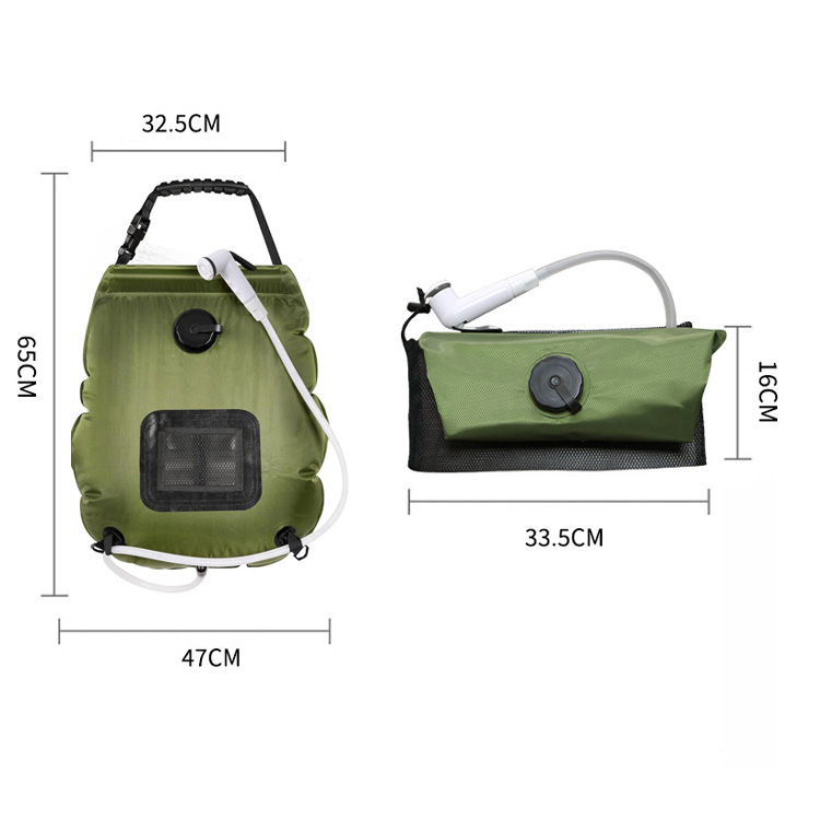 सौर्य पोर्टेबल शावर क्याम्पिङ ताप क्याम्पिङ शावर झोला। आउटडोर साहसिक कार्यका लागि तपाईंको परम पोर्टेबल स्वच्छता समाधान। यो सौर्य नुहाउने झोलाले क्याम्पिङ आरामको लागि 5 ग्यालन/20L तताउने पानी प्रदान गर्दछ। सौर्य ऊर्जा प्रयोग गर्दै, यसले उजाड स्थानमा जहाँसुकै न्यानो, स्फूर्तिदायी नुहाउने अनुभव सुनिश्चित गर्दछ।