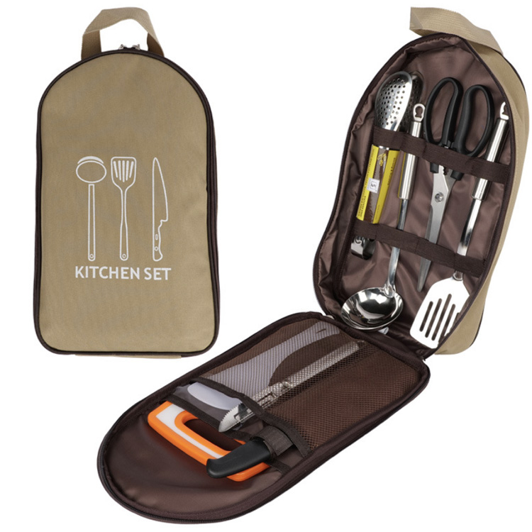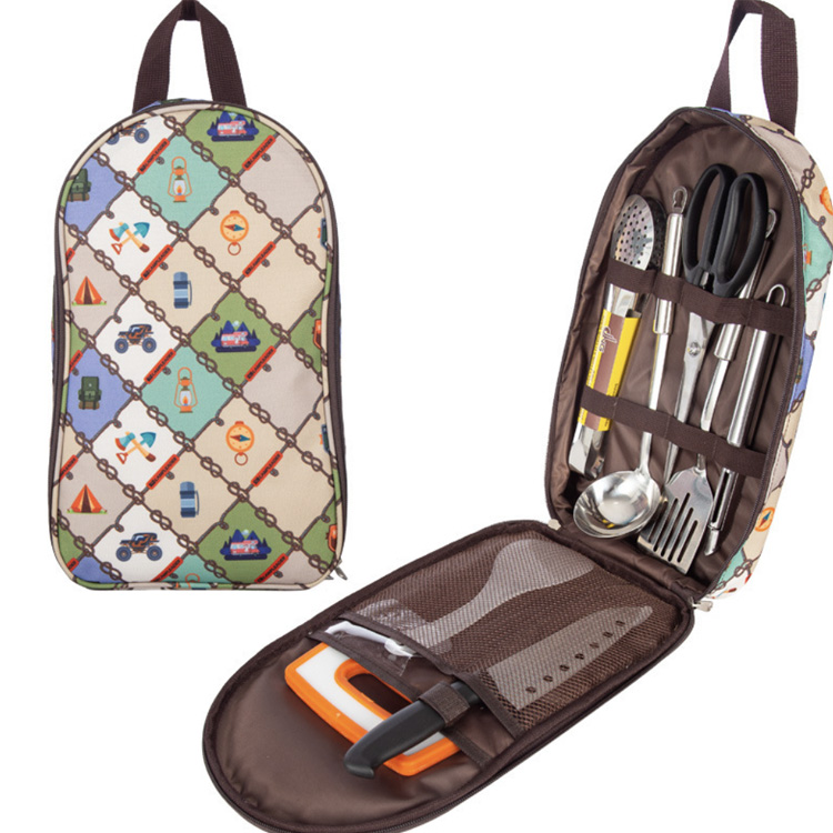 धेरै भित्री जेबहरू र लोचदार लूपहरूले खाना पकाउने भाँडाहरू, कटलरी, र साना सामानहरू सहित सबै उपकरणहरू सुरक्षित रूपमा राख्छन्, ट्रान्जिटमा केहि पनि नहराउने सुनिश्चित गर्दै।