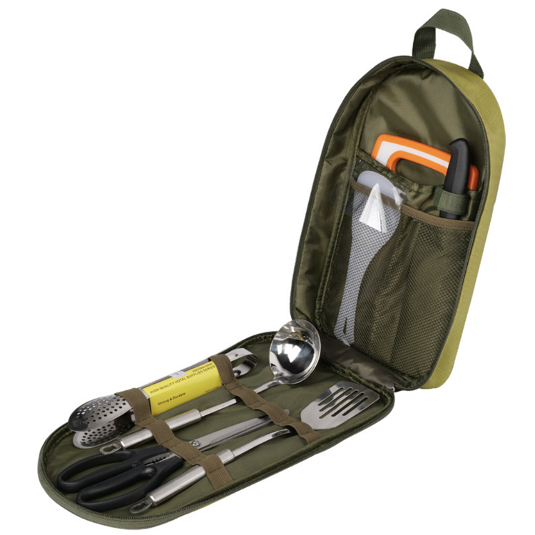 बाहिरी खाना पकाउनको लागि तपाईलाई चाहिने सबै चीजहरू एक पोर्टेबल झोलामा पूर्ण रूपमा व्यवस्थित हुन्छन्, तपाईंको यात्राहरूको लागि छुट्टै क्याम्पिङ उपकरण र सामानहरू जम्मा गर्ने झन्झटलाई हटाउँदै।