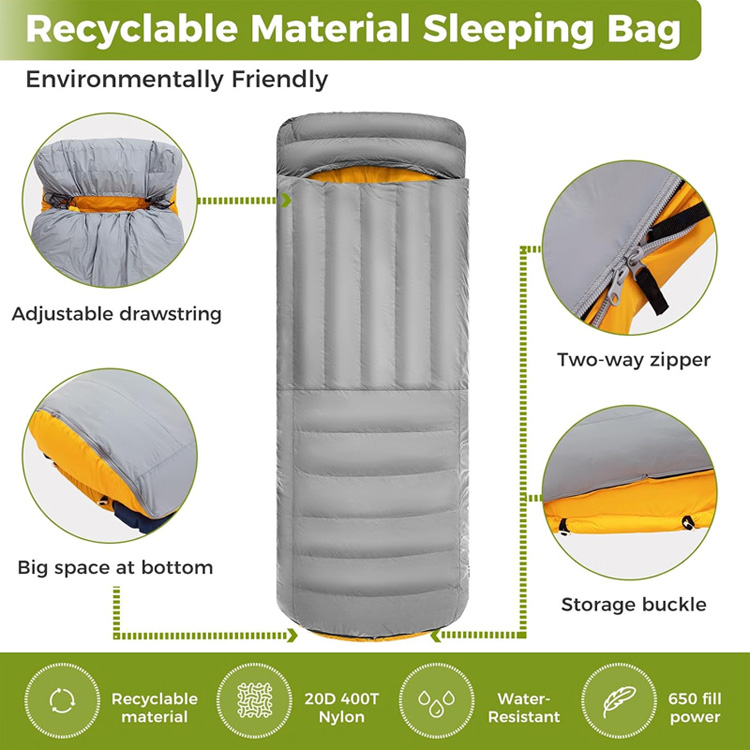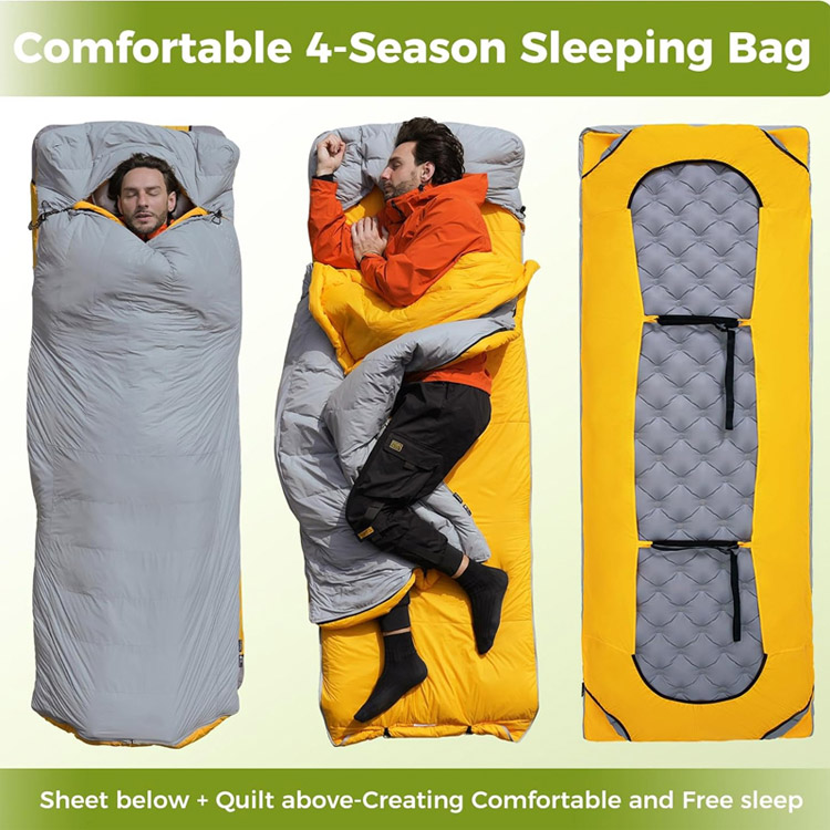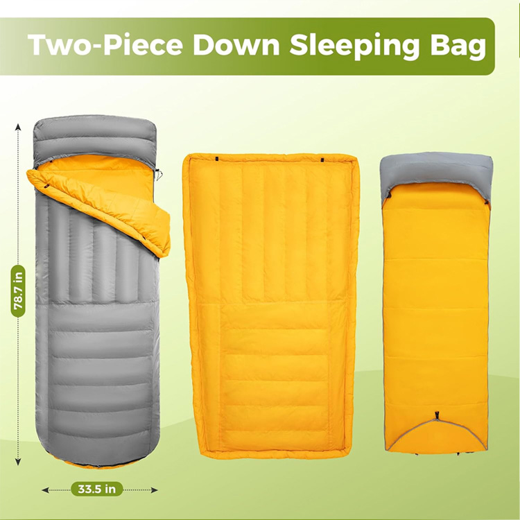 पारम्परिक ममी झोलाबाट पूर्ण-लम्बाइ अलग गर्ने जिपरहरू प्रयोग गरी बहुमुखी टपक्विल्टमा सहज रूपमा रूपान्तरण गर्दछ, विभिन्न सुत्ने प्राथमिकताहरू मिलाएर र परिवर्तनशील तापक्रममा लचिलो कभरेज प्रदान गर्दछ।