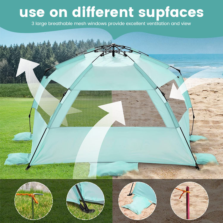 विशेष चाँदीको लेपित कपडाले उत्कृष्ट वायुप्रवाह कायम राख्दै हानिकारक यूभी किरणहरूलाई 98% रोक्छ, विस्तारित समुद्र तटमा बस्नको लागि चिसो छायादार क्षेत्र सिर्जना गर्दछ।