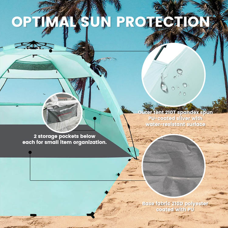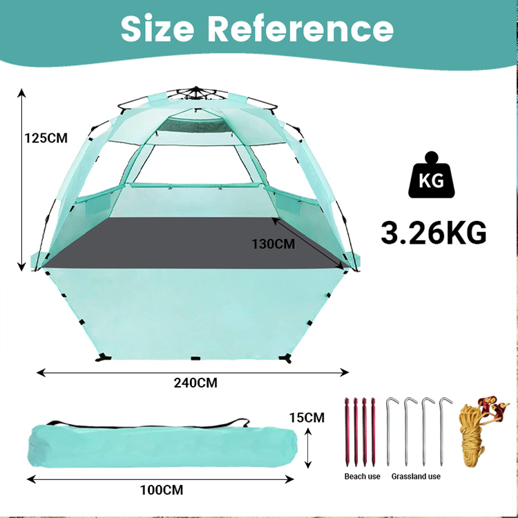 केवल 3.8 पाउन्ड तौलको उच्च-ग्रेड 190T पलिएस्टरबाट बनाइएको, स्थायित्व वा सूर्य सुरक्षा प्रदर्शनमा सम्झौता नगरी असाधारण पोर्टेबिलिटी प्रदान गर्दछ।